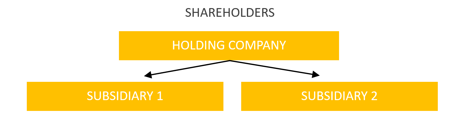 Normally a holding company doesn’t do any trade itself, but it owns shares in subsidiary companies, which will often be doing the trade.